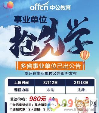 2020毕节事业单位干货抢先学4堂课,中公大咖师资授课原价980,两人拼团9.8主讲联考公基法律学科上课时间:3月12日-13日...